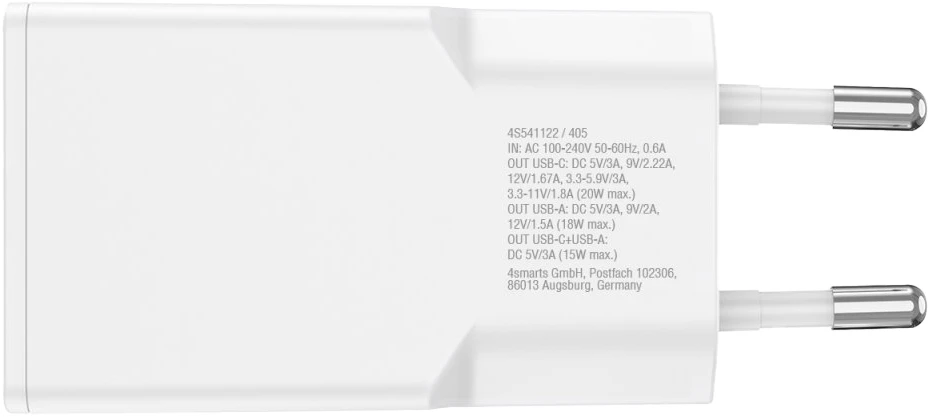4Smarts Netzladegerät PDPlug Duos Slim 20W GaN 1C+1A Weiß